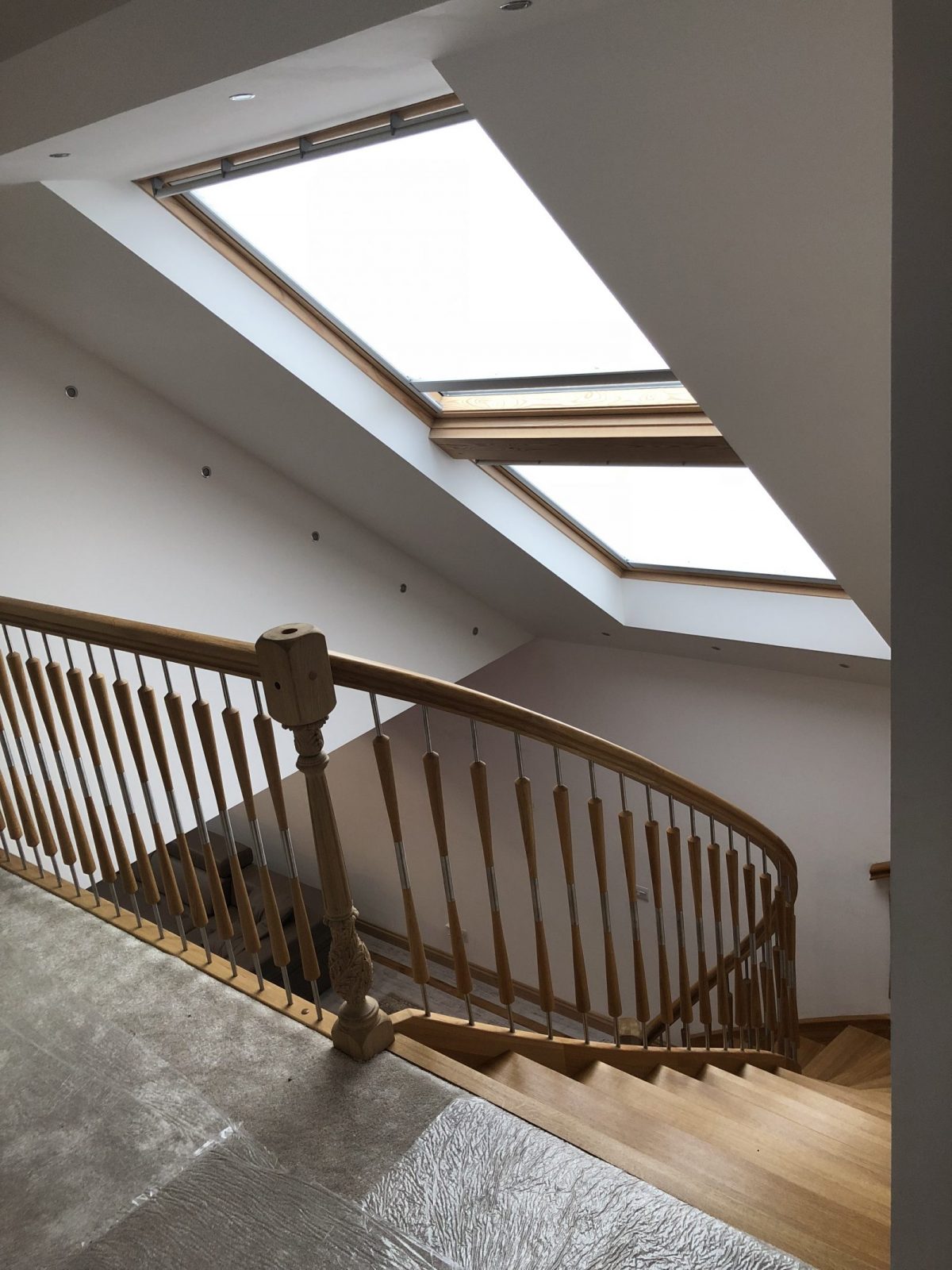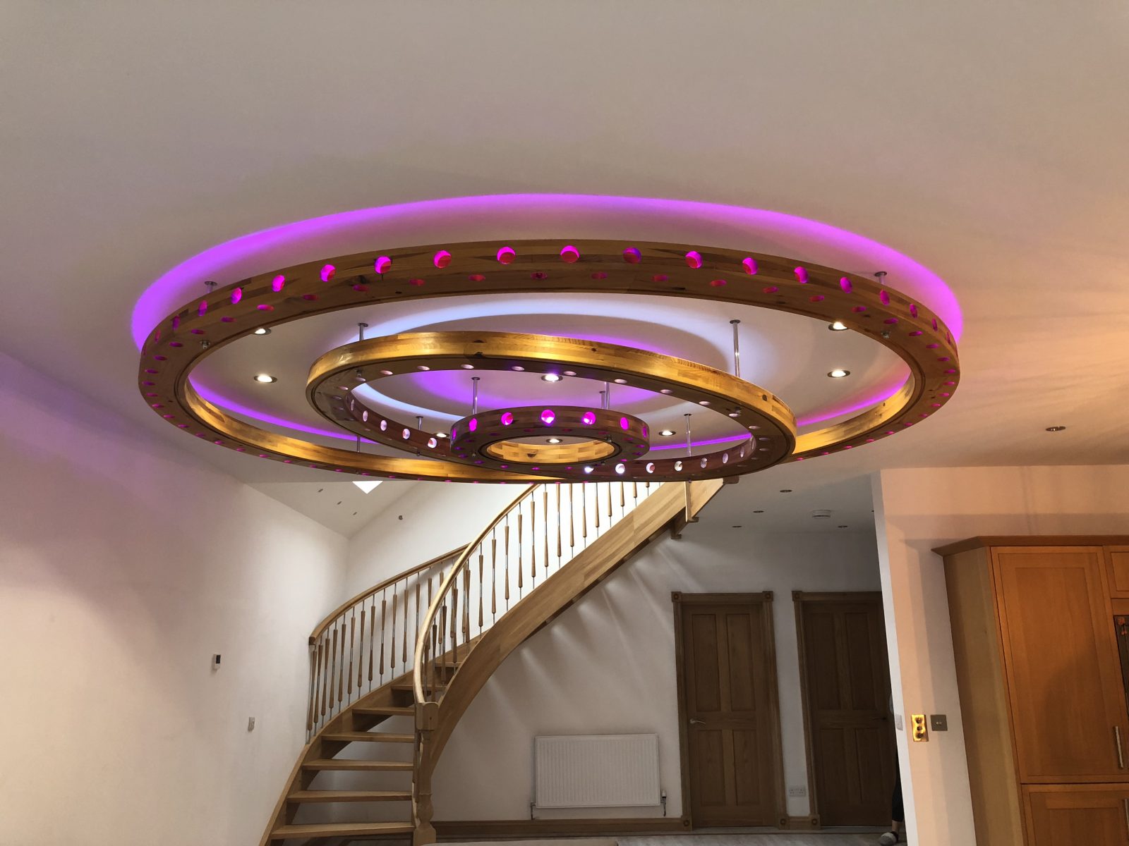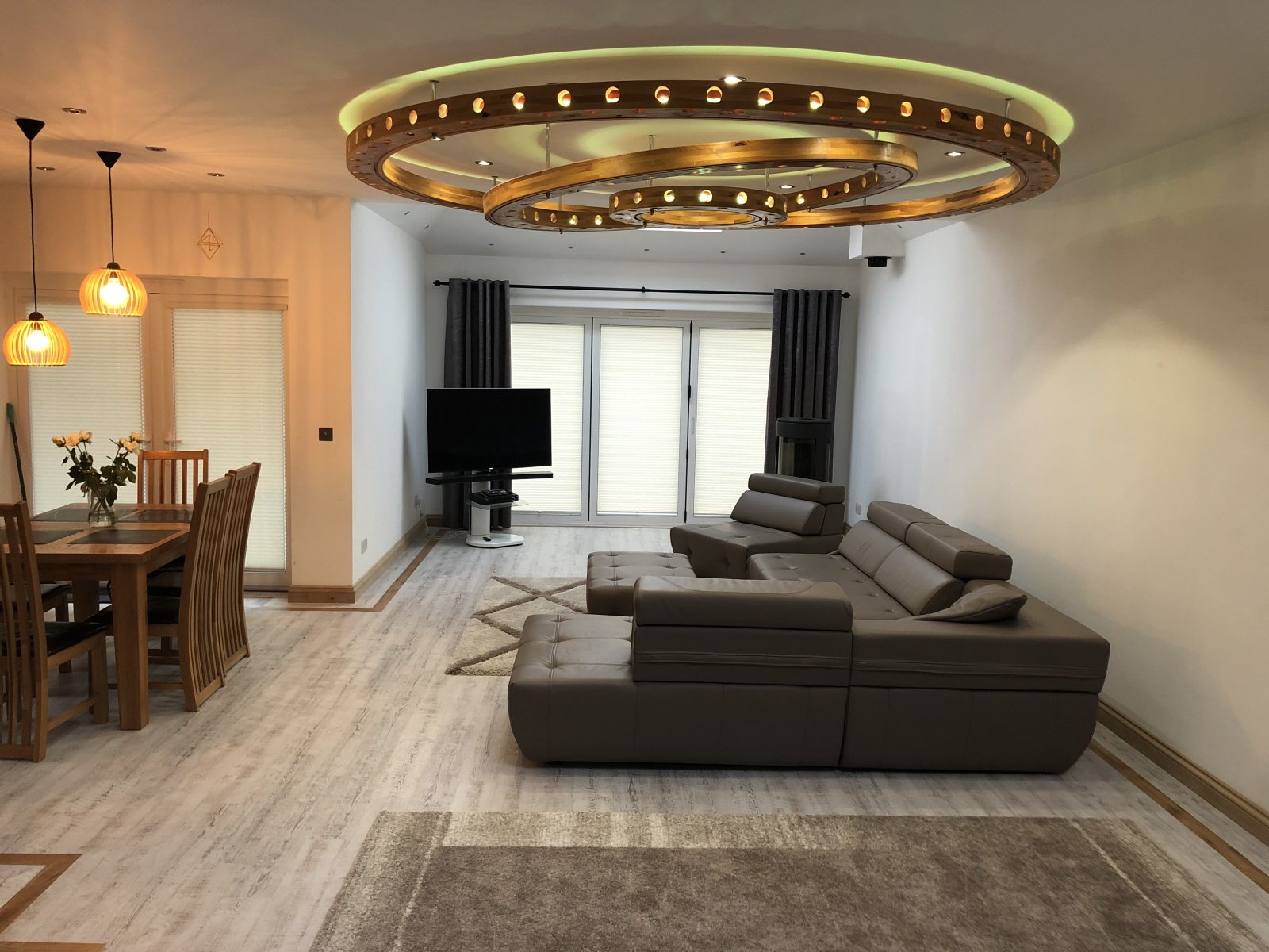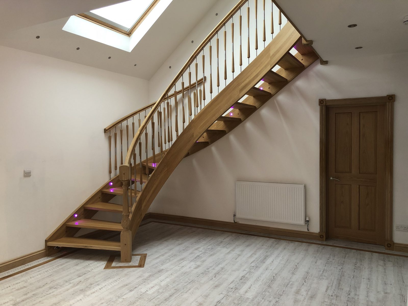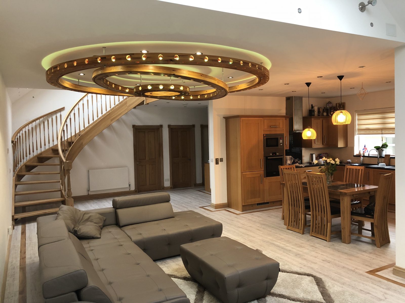 TDL Carried out the insulated external render, 2ndfix carpentry works, bespoke illuminated light fixture, installation of new flooring, installation of bespoke timber stairs, installation of feature timber beams, dry lining and tape and jointing, painting and decorating, installation of new kitchen.